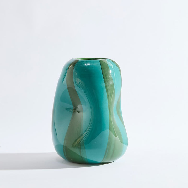 The Candy Large Vase is a bold expression of modern craftsmanship, a sculptural statement piece that brings both colour and character to any interior. Hand-blown from richly tinted glass, each vase showcases smooth, organic curves and flowing ribbons of layered colour, creating a dynamic play of light and reflection. The Pink exudes playful vibrancy, Khaki brings a grounded, earthy warmth, Chocolate adds a sense of depth and sophistication, while Teal offers a cool, contemporary freshness. Perfect as a standalone art object or as a vessel for full, textural arrangements, the Candy Large Vase instantly uplifts your space with artistic energy and elegance.