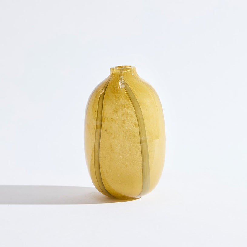 A sculptural accent with a playful twist, the Candy Mini Oval Vase in Khaki brings a touch of refined whimsy to your interior. Hand-blown from tinted glass, its organic oval silhouette and soft amber-green hue capture light beautifully, creating a warm, luminous effect. Perfect as a standalone statement or styled with your favourite dried blooms, this petite piece adds effortless charm to any console, shelf, or tabletop. Each vase is handcrafted, ensuring every piece is truly one-of-a-kind.