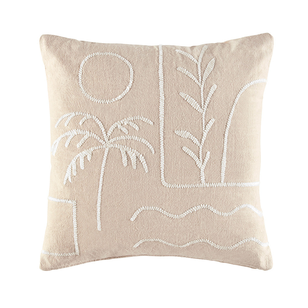 Elevate your space with the Corfu Cushion, a perfect blend of texture and contemporary style. Featuring bold, chunky embroidery on a neutral cotton slub base, this abstract design adds depth and dimension to any setting.