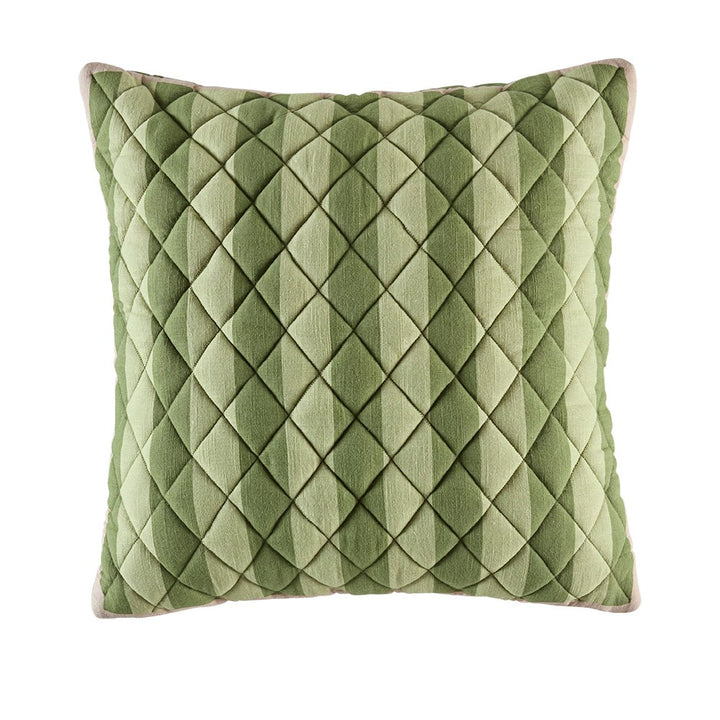 Playful geometry meets plush comfort with the Jester Cushion. Crafted from soft quilted cotton with polyester wadding and lining, this design features a bold geometric stripe pattern that brings movement and modern flair to any space. The intricate diamond quilting adds texture and dimension, enhancing the tactile appeal and creating a beautifully structured finish. Available in Olive, Red, and Caramel, the Jester Cushion combines artistry and craftsmanship through its printed and embroidered detailing — perfect for adding a contemporary edge to sofas, armchairs, or layered bed styling.