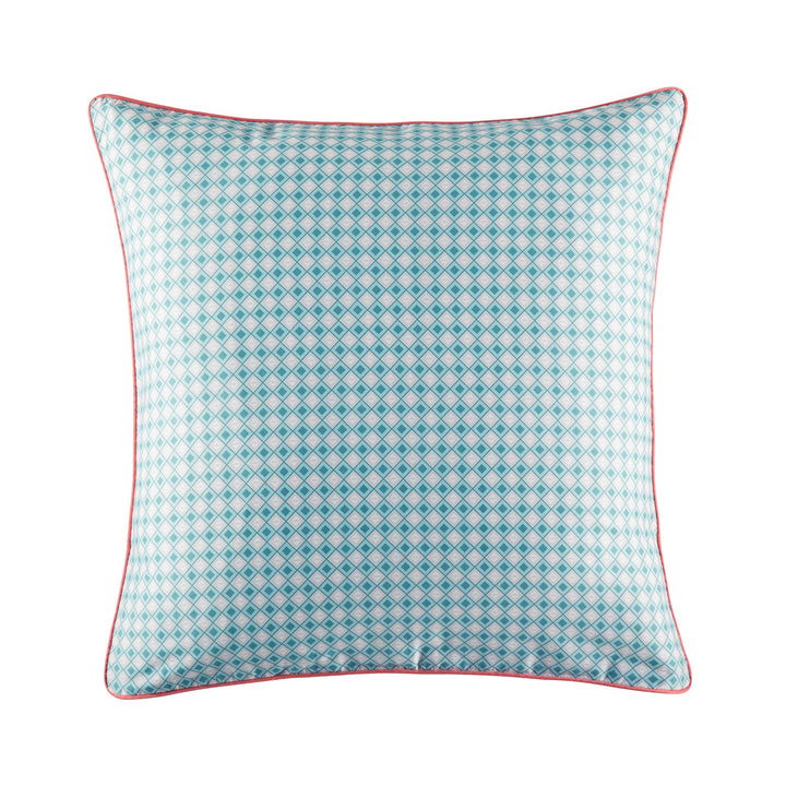 The Mosi euro style pillowcase features a diamond pattern in fresh aqua tones framed by a pop of coral piping. Complete the look with the Mosi quilt cover set.