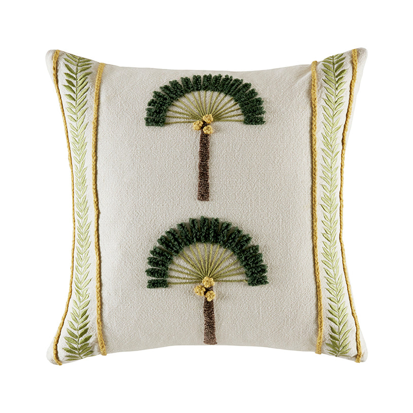 Transport your space to a tropical paradise with the Summerville KAS Green Palm Square Cushion. This unique cushion showcases a captivating mix of embroidery on cotton slub, bringing a touch of nature's allure indoors. Its cotton canvas reverse adds to the appeal and durability. Whether your interior style leans contemporary or you're aiming for a very tropical ambiance, the Summerville cushion is the perfect way to infuse your space with lush greenery and a hint of exotic charm. Turn your home into an oasis of style and comfort with Summerville.